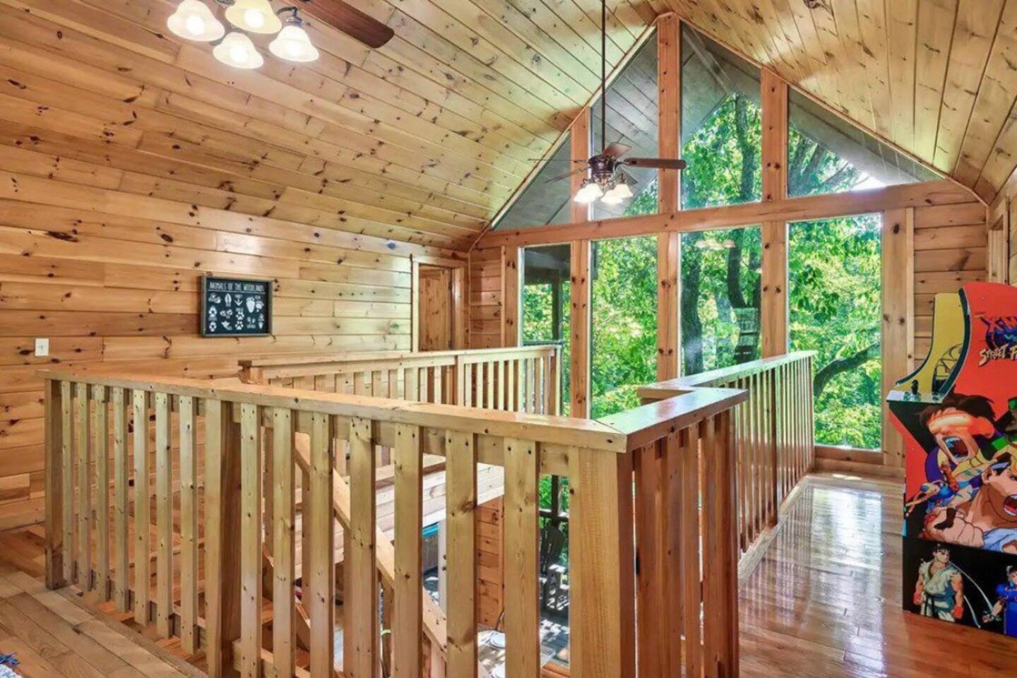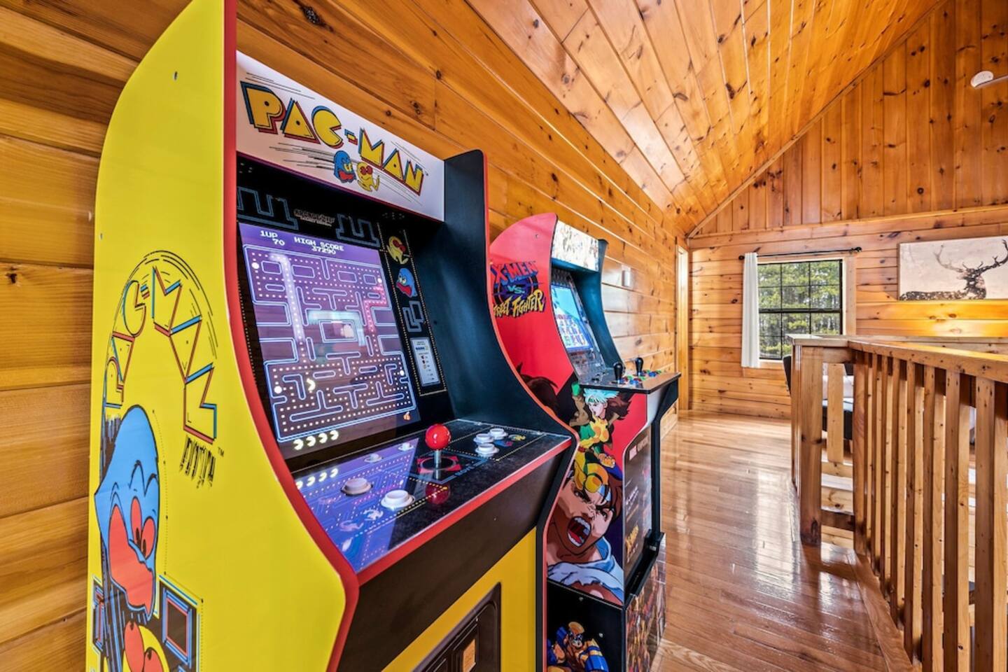 WHAT OUR GUESTS ARE SAYING.... ★★★★★ "Beautiful house and great experience all around!" ★★★★★ "Everything was great! The jacuzzi, pool table, and arcade was awesome! Every night we were there we saw Dollywood’s fireworks show from the cabin, it was amazing! ★★★★★ "Fantastic place all around! Will definitely stay here again!!" ★★★★★ "Great location! Literally just minutes to Dollywood right next door." ★★★★★ "The photos and descriptions does not do this place justice. Amazing stay! Highly recommend! 5 out of 5!" . CABIN DETAILS . ■ KITCHEN AND DINNING (Main Level) ✢ Dinning ware, cups and glasses ✢ Common cooking utensils, pots, pans, baking pans ✢ Coffee station with dip coffee maker. BYO Coffee ✢ Crock pot, Kettle, Toaster with 4 wide slots, Waffle maker ✢ Range Oven ✢ Large microwave ✢ Refrigerator ✢ Dishwasher ✢ Dining table . ■ LIVING ROOM (Main Level) ✢ Large screen TV ✢ Leather sofa sleeper and loveseat ✢ Sofa is a pull out Full Size bed-New Jan 2023 ✢ Comfy Pillows and throw blankets ✢ Gas Fireplace ✢ Have access to 2 bathrooms on the main level . ■ BATHROOM (2 in Main level, 2 in Second Level) ✢ Starter packages of soap/body wash/conditional shampoo ✢Toilet papers as startup supply ✢ Clean towels ✢ Washer and Dryer on main level bathroom . ■ BEDROOM (Main Level) ✢ King bed ✢ Gas fireplace ✢ Jet tub ✢ 2 Night stands, 2 Lamps with night light and USB charger ✢ Ceiling fan ✢ En suite bathroom ✢ Access to lower level balcony . ■ BEDROOM (Second Level) ✢ King bed ✢ Jet tub ✢ 2 Night stands, 2 Lamps with night light and USB charger ✢ En suite bathroom ✢ Ceiling fan ✢ Private upper level balcony . ■ BEDROOM (Second Level) ✢ King bed ✢ 2 Night stands, 2 Lamps with night light and USB charger ✢ En suite bathroom ✢ Ceiling fan ✢ Private upper level balcony . ■ LOFT AREA (Second Level) ✢ Comfortable hang out and reading ✢ Love seat ✢ 2 lounge chairs ✢ Pac-Man and Street Fighter arcade game ✢ Have access to a bathroom on second level . ■ TOP BALCONY'S ✢ Private access from 2 bedrooms ✢ Enjoy peaceful scenic and seasonal mountain view ✢ Outdoor seating . ■ LOWER BALCONY ✢ Hot tub - New Dec 2022- Clean and ready for you. Should be set only between 95 and 104 degree Fahrenheit at all times. ✢ Big hot tub towels provided in the basket next to the hot tub ✢ Outdoor seating and swing . ■ FAMILY GAME AREA (Main Level) ✢ Pool Table ✢ Bar table and chairs ✢ Board games . ■ Office Business Hours: 9 est- 6 est 7 days per week on Airbnb Messenger only.