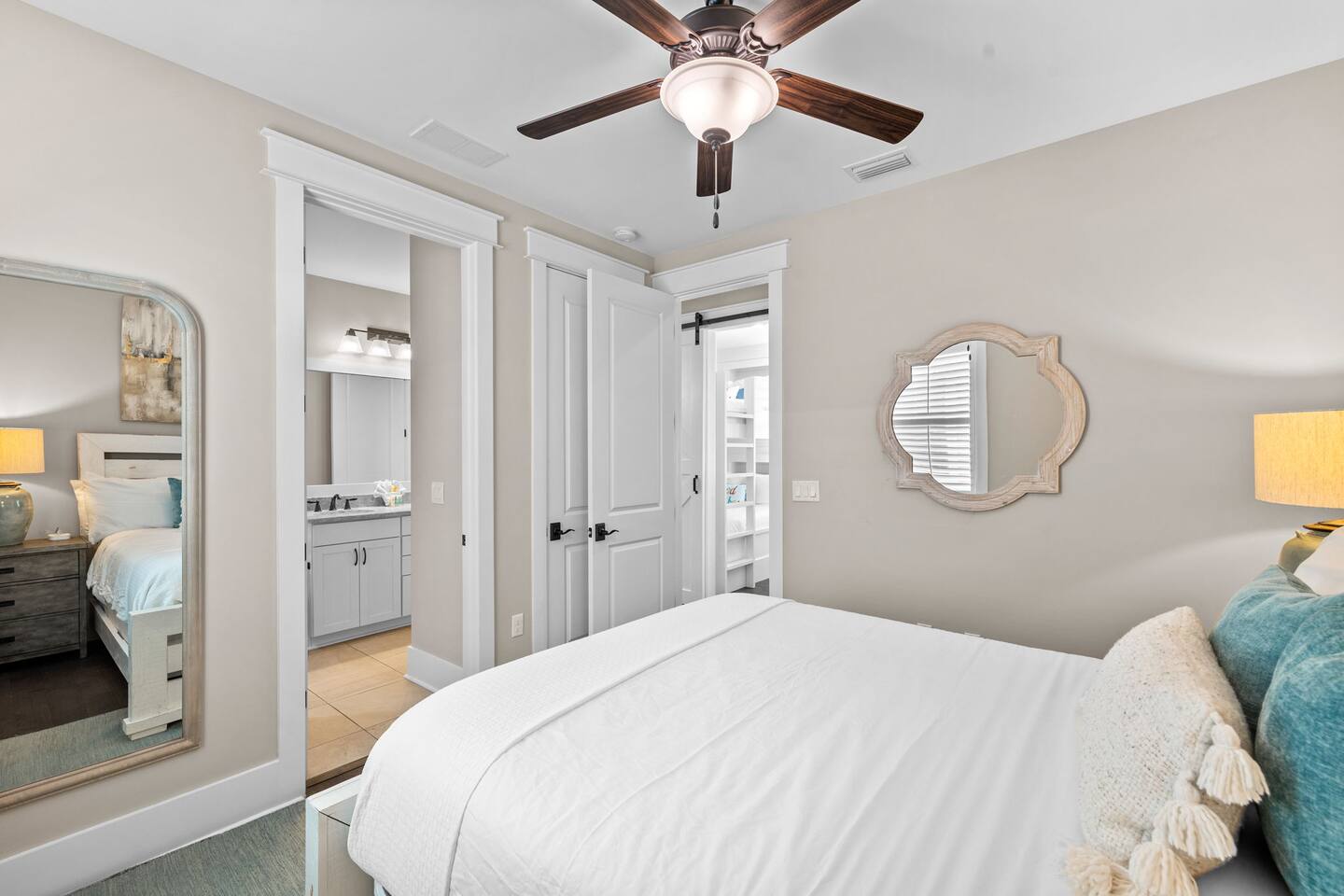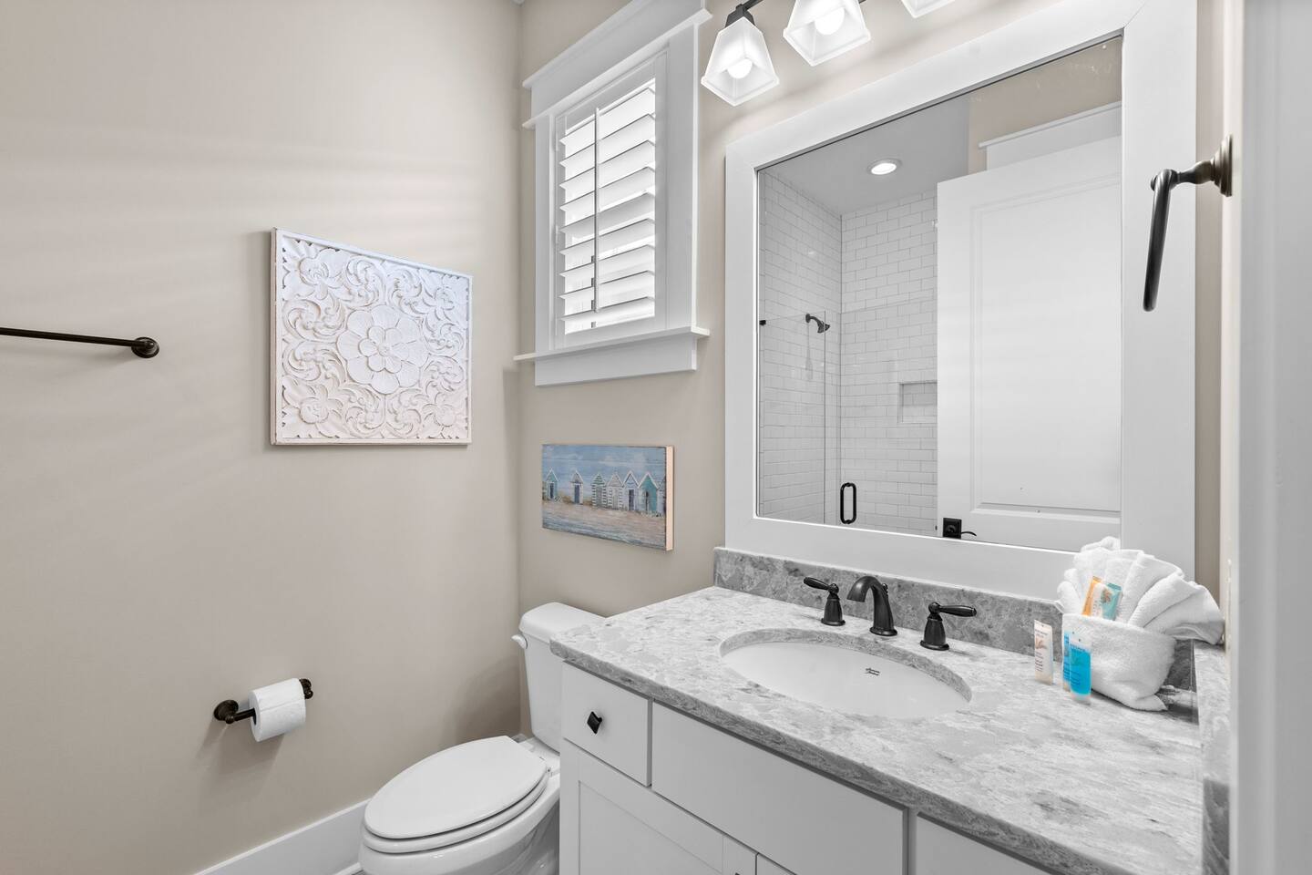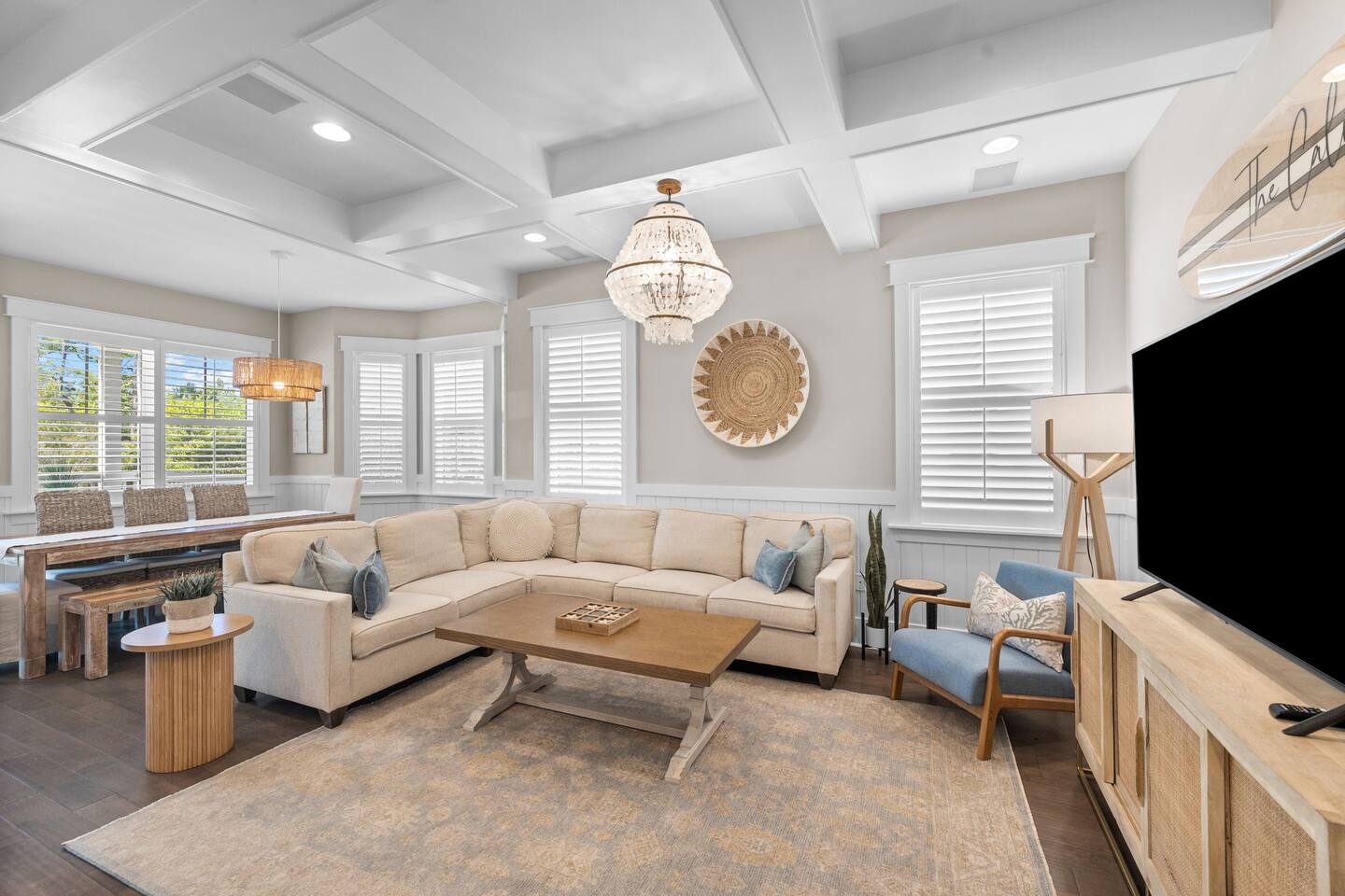 WHAT OUR GUEST ARE SAYING.... ★★★★★ "This is by far the best equipped beach house I’ve ever rented..." ★★★★★ "The Cali Bea is beautiful & very well equipped with high quality furnishings, amenities & decor There's absolutely nothing lacking in the kitchen or anywhere in the house..." ★★★★★ "House is gorgeous and the location is great. Nice bike ride to the beach from the bike trail and not a far ride in the golf cart to the beach." ★★★★★ "We LOVED this place and simply did not want to leave." ★★★★★ "Great location and a very clean home. We enjoyed the golf cart and bikes." . HOUSE DETAILS . ■ KITCHEN AND DINNING (Main Level) ✢ Dinning ware, cups and glasses ✢ Common cooking utensils, pots, pans, baking pans ✢ Keurig Combo Kcup/Drip Coffee, BYO Coffee ✢ Crock pot, Kettle, Toaster, Rice Maker, Blender ✢ Single Oven ✢ Gas Range ✢ Large Microwave ✢ Refrigerator ✢ Dishwasher ✢ Dining table seats 8 (5 chairs + Large Bench for 3) ✢ Island with 2 counter top stools ✢ Children Dining Wear ✢ Gas Grill on back porch . ■ LIVING ROOM (Main Level) ✢ Large screen Roku TV ✢ Large Sectional Couch ✢ 2 Chairs ✢ Comfy Pillows and throw blankets ✢ Access to 2 bathrooms (1/2 bath + Full Bath) on the main level ✢ Laptop-friendly workspace . ■ BATHROOM (2 in Main level, 2 in Second Level) ✢ Starter packages of soap/body wash/conditional shampoo ✢Toilet papers as startup supply ✢ Clean towels ✢ Washer and Dryer on main level . ■ MASTER BEDROOM (Main Level) ✢ King bed ✢ En suite bathroom with Walk-in tile shower ✢ 2 Night stands, 2 Lamps, USB chargers and sound machine ✢ Ceiling fan ✢ Large Dresser ✢ Closet . ■ MASTER BEDROOM (Second Level) ✢ King bed ✢ En suite bathroom walk in tile shower ✢ Large screen Roku TV ✢ 2 Night stands, 2 Lamps, USB chargers and sound machine ✢ Ceiling fan ✢ Large Dresser ✢ Large Walk In Closet . ■ GUEST BEDROOM (Second Level) ✢ Queen bed ✢ Shared Double Sink, Shower Tub Bathroom ✢ 2 Night stands, 2 Lamps, USB chargers and sound machine ✢ Ceiling fan ✢ Closet . ■ BUNK ROOM (Second Level) ✢ Queen over Queen Bunk Bed - New Dec 2023 ✢42" Roku TV in built in each bunk ✢LED lighting ✢ Shared Double Sink, Shower Tub Bathroom ✢ Closet . ■ SITTING AREA (Second Level) ✢ Work Space or hang out area. ✢ Dedicated Work Desk, Chair with Monitor ✢ 2 Swivel rock chairs ✢ Large screen Roku TV . ■ TOP BALCONY ✢Newly screen in porch ✢ Enjoy peaceful scenic views featuring a pond view / fountain ✢ Large Pottery Barn Sectional and Pillows ✢ Large Bed Swing with Pillows ✢2 Polywood Adirondack Rocking Chairs . ■ LOWER BALCONY ✢ Large Pottery Barn Sectional ✢ 4 Seat Polywood Table and Chair Dinning Set . ■ COMPLIMENTARY AMENITIES ✢ 6 Seat Lithium Golf Cart (signed agreement required) ✢ 4 Beach Comber Bikes (signed agreement required) ✢ 2 Child Bike Buggy Trailers (1 single, 1 double) ✢ Beach Chairs, Beach Umbrella, Small Cooler, Beach Wagon ✢ Misc Beach Toys . ■ KID FRIENDLY AMENITIES ✢ High Chair, Toddler Tower, Pack N Play, Safety Gate ✢ Board games, Small toys, Books, Puzzles. . ■ We provide a starter sets of Soaps, shampoos, toilet paper and paper towels. If additional items are needed, please see near by stores for your convenience. . ■ Condiments, zip locks, coffee are not provided. . ■ NO Beach Towels Provided: Please bring your own beach towels and enjoy the Pools and Beaches. . ■ Nearby Restaurants: Publix Supermarket and Deli, Pizza by the Sea, Fish Out of Water, Chan's Wine World, The Perfect Pig, Great Southern Cafe, The Gathering Spot and Sushi Bar, AmaVida Coffee and Tea, Bud and Alley's, Taco Bar, Barefoot Barbecue, Pickles, Air-Stream Row and more! . ■ Office Business Hours: 9est- 6est 7 days per week on Airbnb Messenger only.