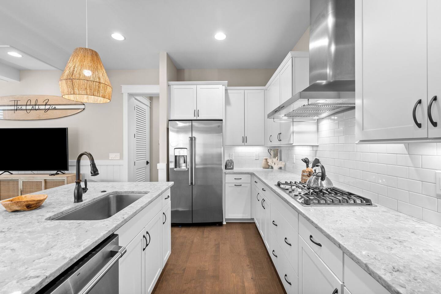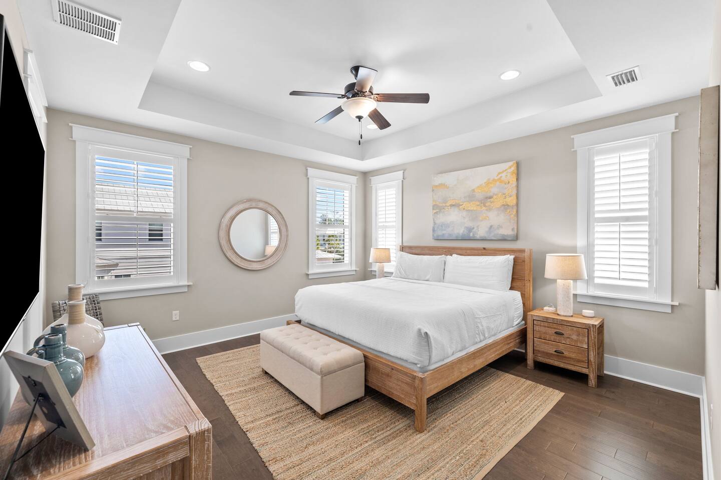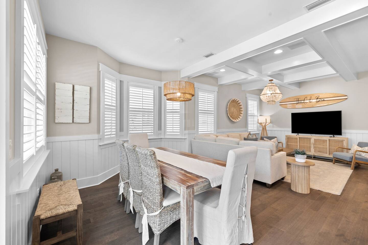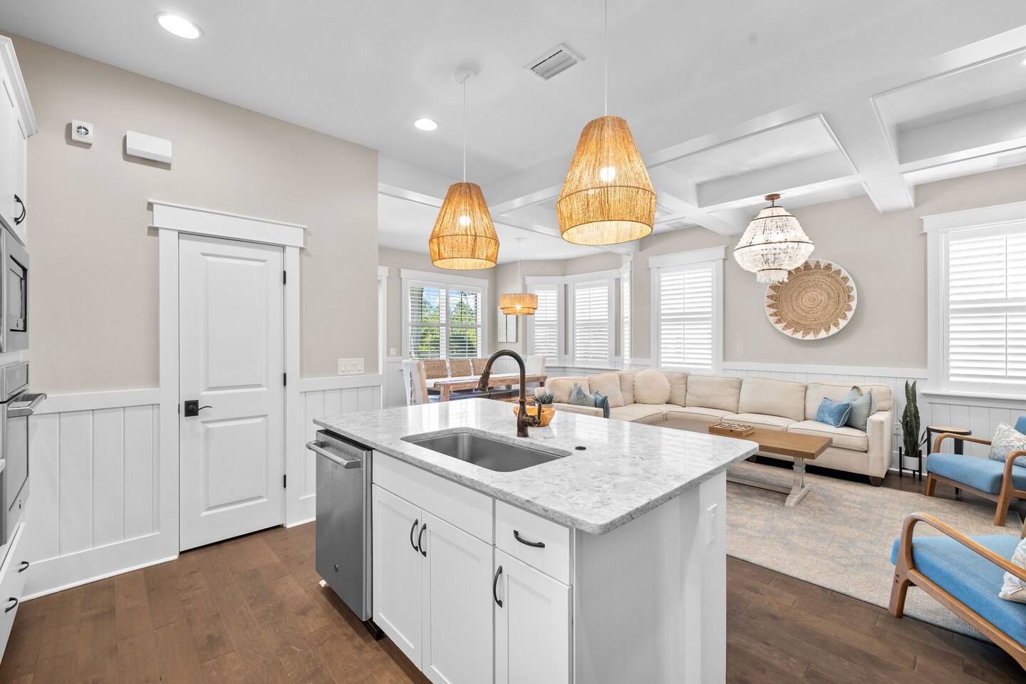WHAT OUR GUEST ARE SAYING.... ★★★★★ "This is by far the best equipped beach house I’ve ever rented..." ★★★★★ "The Cali Bea is beautiful & very well equipped with high quality furnishings, amenities & decor There's absolutely nothing lacking in the kitchen or anywhere in the house..." ★★★★★ "House is gorgeous and the location is great. Nice bike ride to the beach from the bike trail and not a far ride in the golf cart to the beach." ★★★★★ "We LOVED this place and simply did not want to leave." ★★★★★ "Great location and a very clean home. We enjoyed the golf cart and bikes." . HOUSE DETAILS . ■ KITCHEN AND DINNING (Main Level) ✢ Dinning ware, cups and glasses ✢ Common cooking utensils, pots, pans, baking pans ✢ Keurig Combo Kcup/Drip Coffee, BYO Coffee ✢ Crock pot, Kettle, Toaster, Rice Maker, Blender ✢ Single Oven ✢ Gas Range ✢ Large Microwave ✢ Refrigerator ✢ Dishwasher ✢ Dining table seats 8 (5 chairs + Large Bench for 3) ✢ Island with 2 counter top stools ✢ Children Dining Wear ✢ Gas Grill on back porch . ■ LIVING ROOM (Main Level) ✢ Large screen Roku TV ✢ Large Sectional Couch ✢ 2 Chairs ✢ Comfy Pillows and throw blankets ✢ Access to 2 bathrooms (1/2 bath + Full Bath) on the main level ✢ Laptop-friendly workspace . ■ BATHROOM (2 in Main level, 2 in Second Level) ✢ Starter packages of soap/body wash/conditional shampoo ✢Toilet papers as startup supply ✢ Clean towels ✢ Washer and Dryer on main level . ■ MASTER BEDROOM (Main Level) ✢ King bed ✢ En suite bathroom with Walk-in tile shower ✢ 2 Night stands, 2 Lamps, USB chargers and sound machine ✢ Ceiling fan ✢ Large Dresser ✢ Closet . ■ MASTER BEDROOM (Second Level) ✢ King bed ✢ En suite bathroom walk in tile shower ✢ Large screen Roku TV ✢ 2 Night stands, 2 Lamps, USB chargers and sound machine ✢ Ceiling fan ✢ Large Dresser ✢ Large Walk In Closet . ■ GUEST BEDROOM (Second Level) ✢ Queen bed ✢ Shared Double Sink, Shower Tub Bathroom ✢ 2 Night stands, 2 Lamps, USB chargers and sound machine ✢ Ceiling fan ✢ Closet . ■ BUNK ROOM (Second Level) ✢ Queen over Queen Bunk Bed - New Dec 2023 ✢42" Roku TV in built in each bunk ✢LED lighting ✢ Shared Double Sink, Shower Tub Bathroom ✢ Closet . ■ SITTING AREA (Second Level) ✢ Work Space or hang out area. ✢ Dedicated Work Desk, Chair with Monitor ✢ 2 Swivel rock chairs ✢ Large screen Roku TV . ■ TOP BALCONY ✢Newly screen in porch ✢ Enjoy peaceful scenic views featuring a pond view / fountain ✢ Large Pottery Barn Sectional and Pillows ✢ Large Bed Swing with Pillows ✢2 Polywood Adirondack Rocking Chairs . ■ LOWER BALCONY ✢ Large Pottery Barn Sectional ✢ 4 Seat Polywood Table and Chair Dinning Set . ■ COMPLIMENTARY AMENITIES ✢ 6 Seat Lithium Golf Cart (signed agreement required) ✢ 4 Beach Comber Bikes (signed agreement required) ✢ 2 Child Bike Buggy Trailers (1 single, 1 double) ✢ Beach Chairs, Beach Umbrella, Small Cooler, Beach Wagon ✢ Misc Beach Toys . ■ KID FRIENDLY AMENITIES ✢ High Chair, Toddler Tower, Pack N Play, Safety Gate ✢ Board games, Small toys, Books, Puzzles. . ■ We provide a starter sets of Soaps, shampoos, toilet paper and paper towels. If additional items are needed, please see near by stores for your convenience. . ■ Condiments, zip locks, coffee are not provided. . ■ NO Beach Towels Provided: Please bring your own beach towels and enjoy the Pools and Beaches. . ■ Nearby Restaurants: Publix Supermarket and Deli, Pizza by the Sea, Fish Out of Water, Chan's Wine World, The Perfect Pig, Great Southern Cafe, The Gathering Spot and Sushi Bar, AmaVida Coffee and Tea, Bud and Alley's, Taco Bar, Barefoot Barbecue, Pickles, Air-Stream Row and more! . ■ Office Business Hours: 9est- 6est 7 days per week on Airbnb Messenger only.