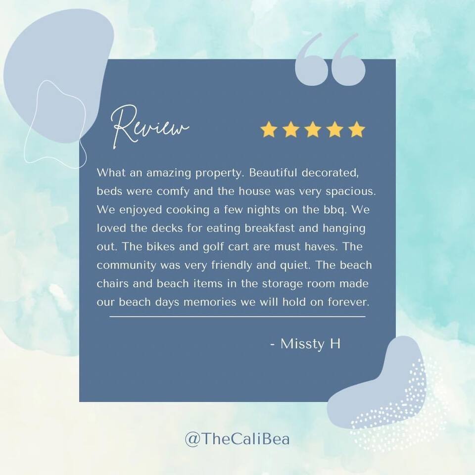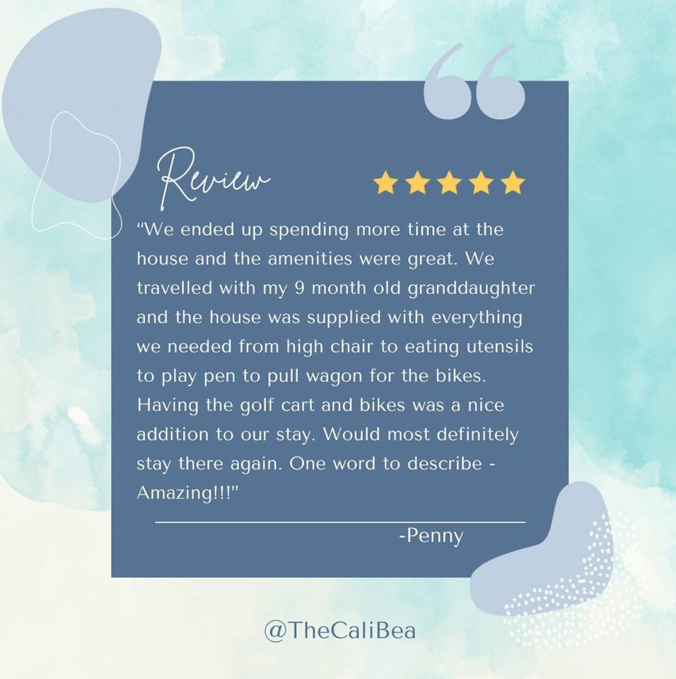 The Red Tape: We want you to enjoy your time in this home but do not put our rental permit at risk or you will be prosecuted to the full extent of the law. Quiet time is 9pm-10am. ■ All guests must sign a Rental Agreement after booking. You will be sent a link to click and sign. Without a signed agreement which includes Golf Cart and Bike waivers access to the these amenities will be denied. ■ NO SMOKING! Smoking/Vaping of any type is NOT permitted anywhere ON or IN the property. Guests who violate this policy will be charged an additional $500, plus the expense of any necessary cleaning. Violations may also result in immediate eviction and forfeiture of rent. ■ All guests must be 25+ years old, for every 3 guests under 25 there must be 1 guest 25+. (Parents with children or young adults under 25 with are allowed) ■ 2 Vehicle Max in Driveway, there is first come first serve street parking. No Trailer parking allowed in NatureWalk. ■ We do not send maintenance to the property during your stay. Only after you depart. ■ Maximum Permitted Occupancy is 10. Exceeding the maximum permitted occupancy will result in a fine by both local authorities, and from the host of $250. You will also be asked to leave. ■ No late check-out or early check-in. If a guest does not vacate the property by 10AM on their scheduled day of departure, the fee for failing to vacate is $50.00 dollars for the first half hour and $100.00 for each subsequent half hour that the guest fails to vacate the property. ■ NO pets are permitted at The Cali Bea at any time, not even visiting pets, inside or outside. Penalties and/or cancellation of reservation without refund will be enforced. ■ Absolutely no fires or open flames of any kind including candles. The use of a candle or any type of flame will result in a $150 fine. ■ No refunds for weather/natural disasters/power outages/other things that are beyond our control.